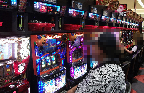 「ささみさん@がんばらないすろっと」や「ミリオンゴッド-神々の凱旋-」など、さまざまな機種に遊技を楽しむプレイヤーの姿があった。