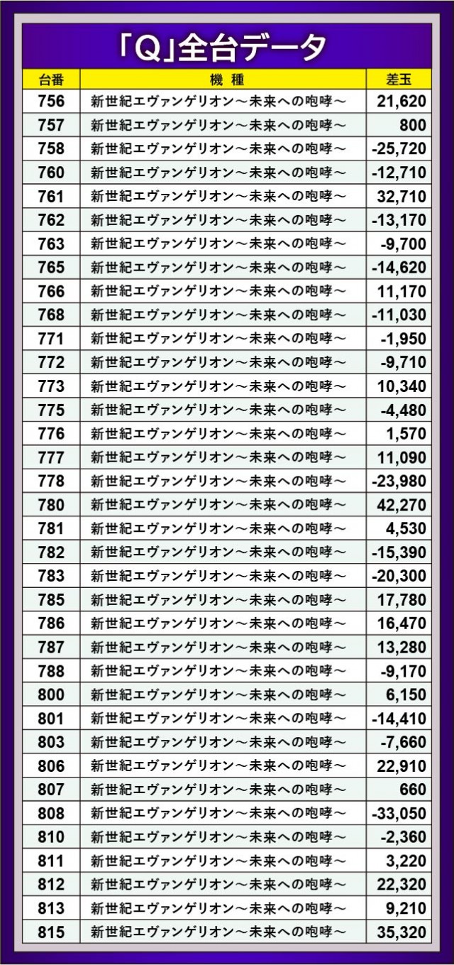 今なお色褪せない人気を誇る『新世紀エヴァンゲリオン〜未来への咆哮〜』は、多数の万発OVERが発生していた。その中で780番台+42,270玉という大きな記録が打ち立てられ、ほかにも761番台+32,710玉や815番台+35,320玉といった数字を確認できる。見事にST突入を果たせば、そのまま勢いが衰えることなく連チャンを重ねていた様子が顕著で、遊技していたファンは有意義な時間を過ごしていたことだろう。
