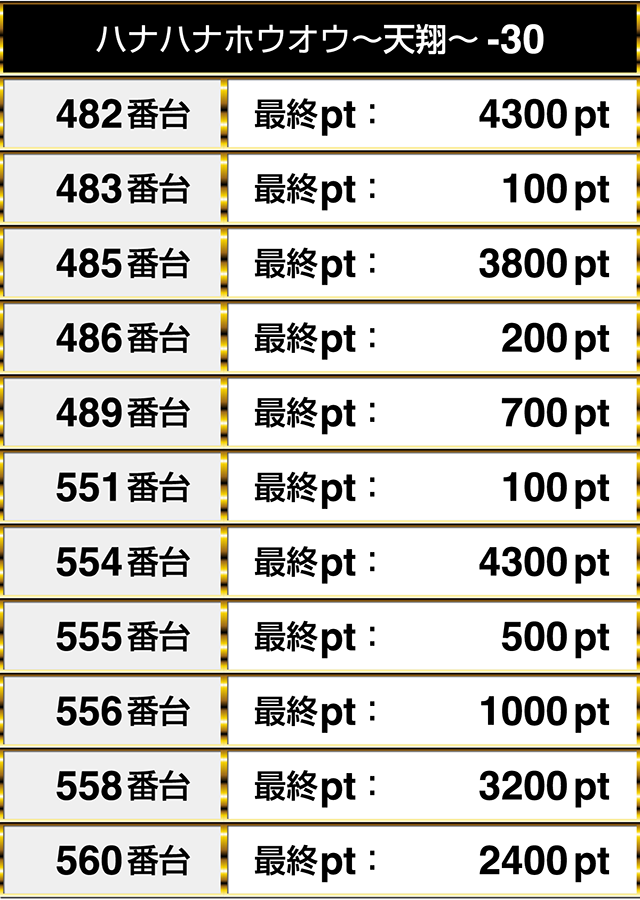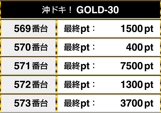 『沖ドキ!GOLD-30』は8台中5台がプラスptを記録し、571番台は7500pt!!