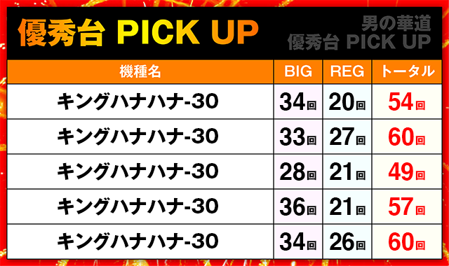 「キングハナハナ-30」から、好調な5台をピックアップ。