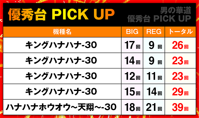 選んだ5台のなかには、REGの回数がBIGの回数を上回ったものもあった。