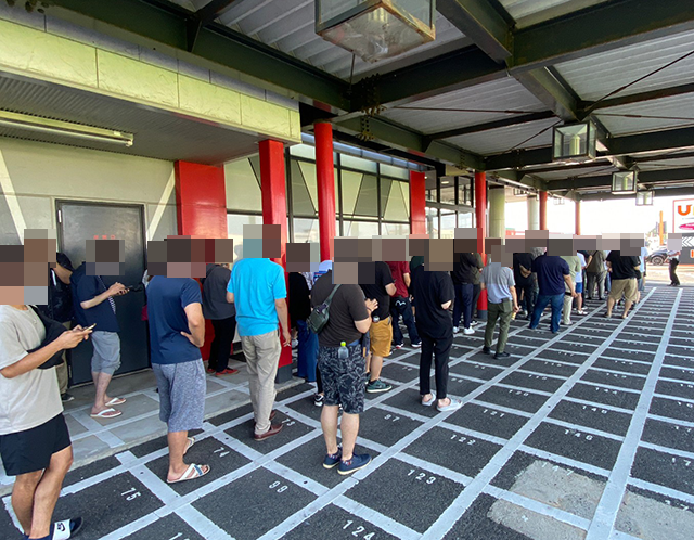 朝イチから大勢のプレイヤーが集まっており、開店前には100名を超える人々が集合。整列場所にできた長い列は、ホールへの期待の大きさをあらわしているようにみえた。