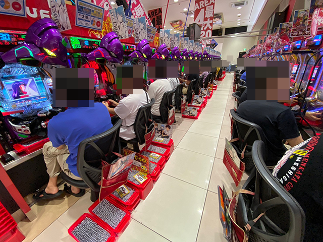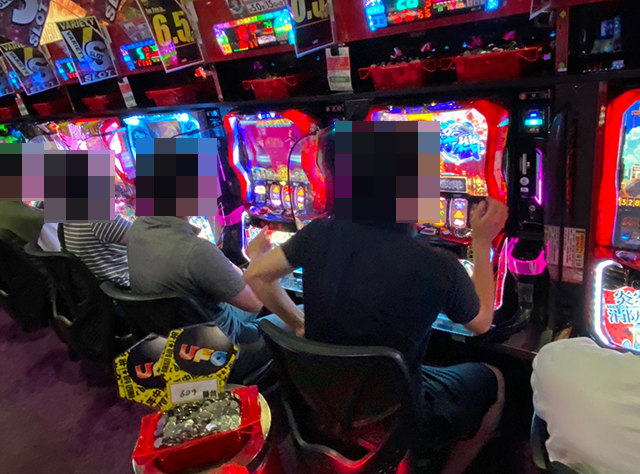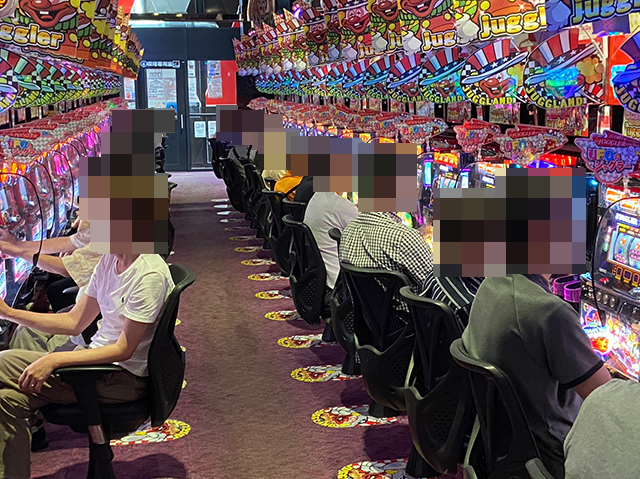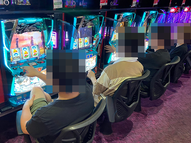 ボーナスタイプや沖スロに対する支持も厚く、遊技を楽しんでいる姿が多い。