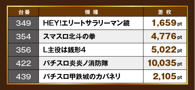 今回の「ウエスタン佐倉店」の結果は五カ国制圧。前回が四カ国制圧だったため、一歩前進したのは確かだろう。しかし残念ながら全国制圧には届かなかった。だが結果に目を向けてみると、「爆ノ国」が極めて優秀な結果を連発させており、『パチスロ炎炎ノ消防隊』からは10,000ptオーバー記録が誕生!