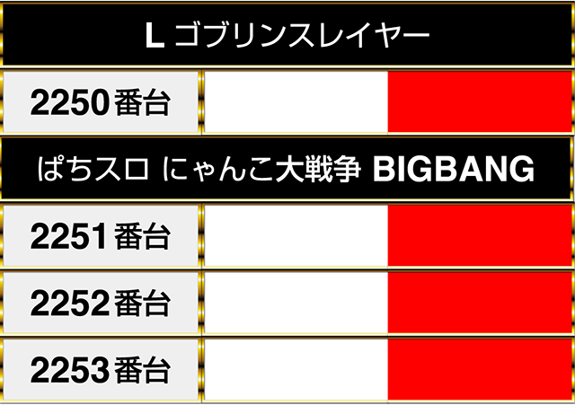 『Lゴブリンスレイヤー』の1台は『ぱちスロ にゃんこ大戦争 BIGBANG』の3台と並んでプラスpt!!