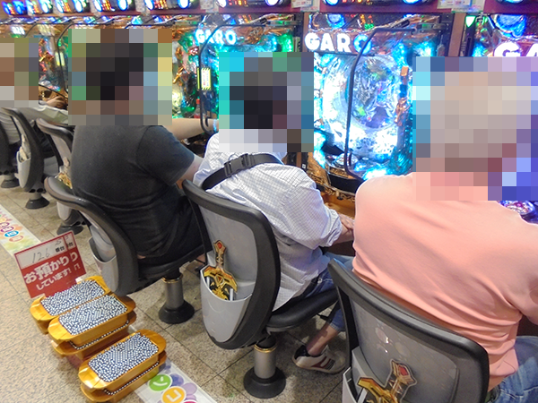 16時を過ぎた頃の4円パチンコでは、「CR牙狼 魔戒ノ花」や「CR真・花の慶次」といったMAXタイプが盛況。