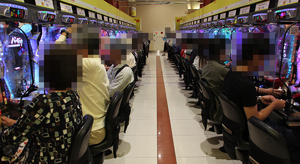 「CRスーパー海物語IN JAPAN」などの海物語シリーズも盛況で、笑顔を浮かべているプレイヤーも多い。