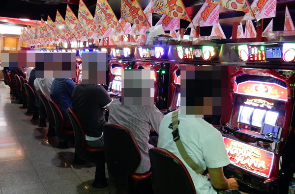 たくさんのプレイヤーが明るい表情でパチスロを楽しんでいた「ラスベガス大橋通店」。