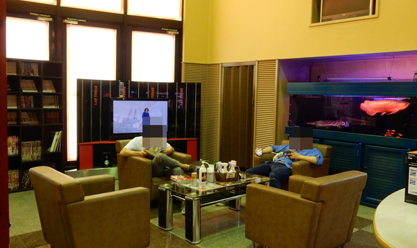 漫画本があるレストスペースでは熱帯魚が飼育されているため、視覚的にも楽しむことが可能。