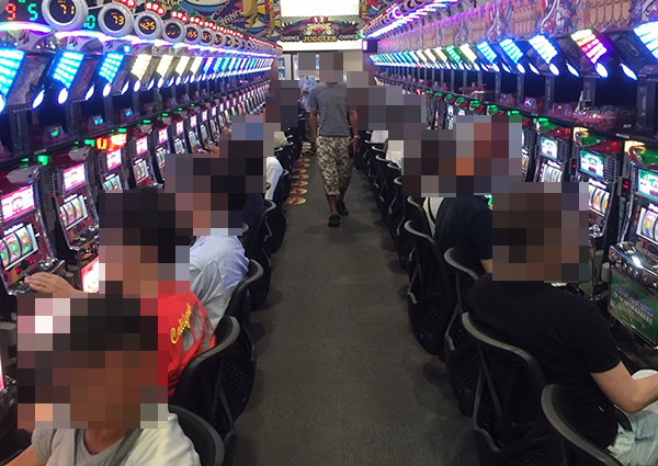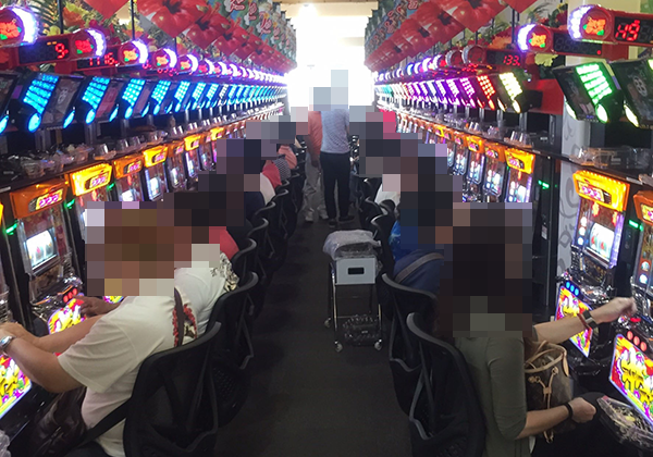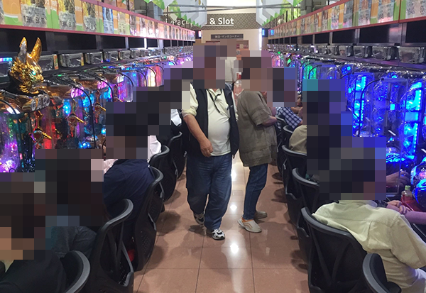 ホール内はたくさんのプレイヤーでにぎわっており、パチンコ・パチスロのどちらからも活気のある雰囲気を感じられた。