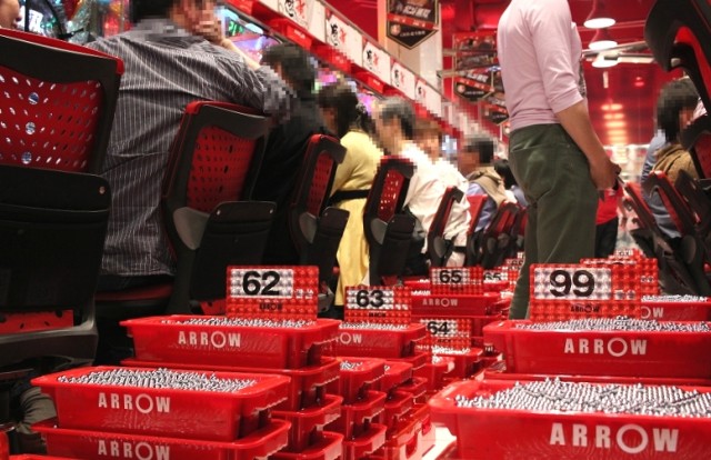 ただ、お客さんをよくみると、朝から同じ人が打っている・・・。