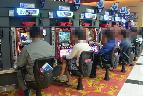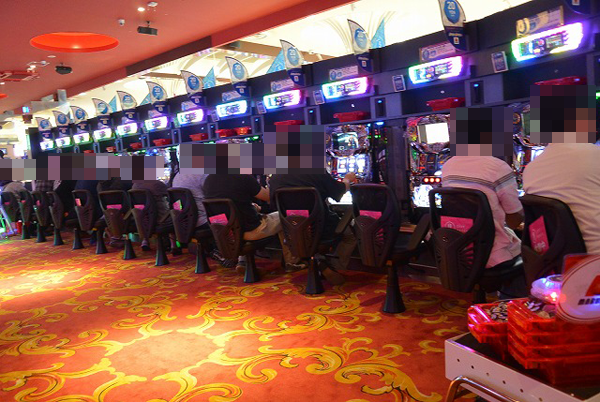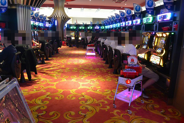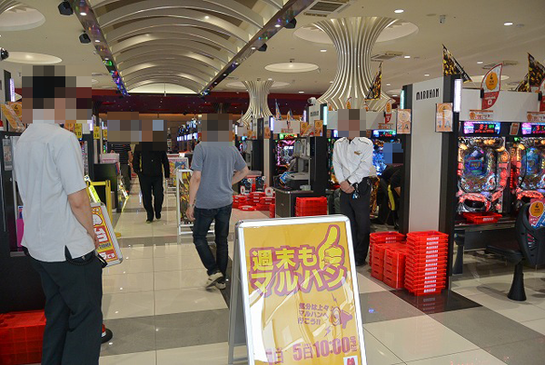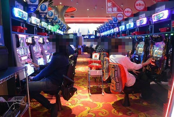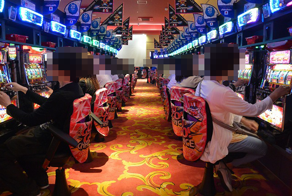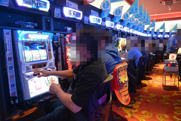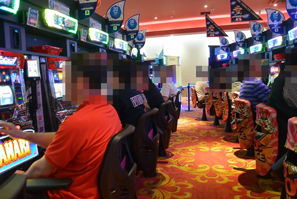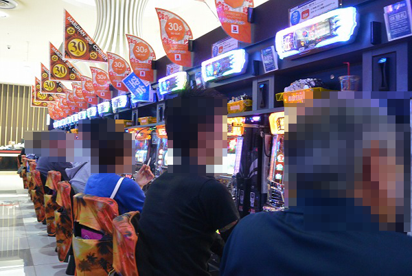 パチスロコーナーにズラリと並んだ大勢のユーザー。