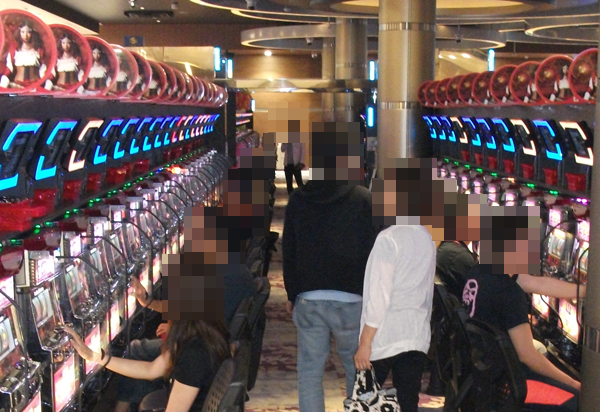 シャッターをきるべきタイミングが満載。ひとつひとつのシマに大活躍といったユーザーの姿があった。「マルハン前橋天川大島店」の一面はパチスロコーナーで決まりだろう。