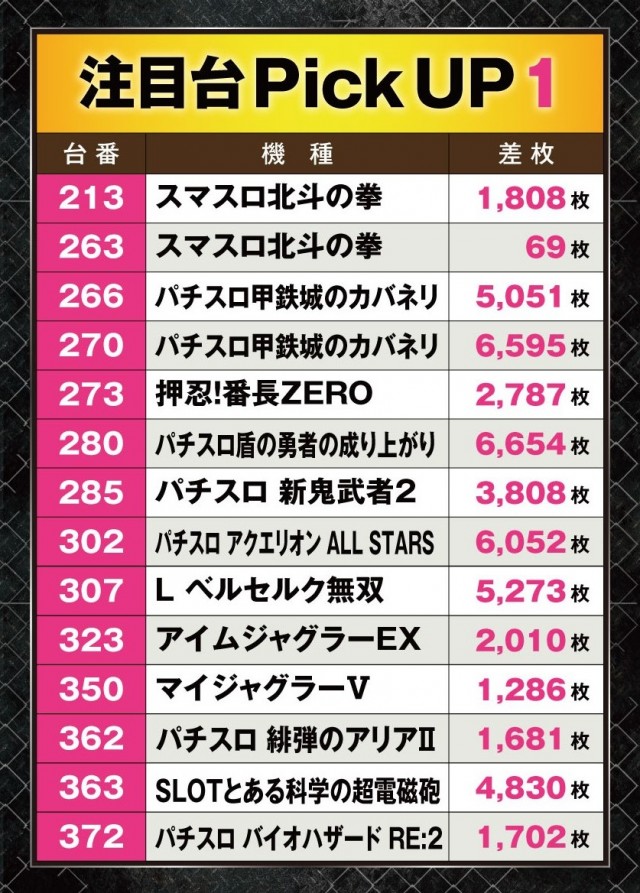 今回は至る所で好調台が目に付く結果となった。そしてその台のすべてがプラスと圧巻の内容となっている!