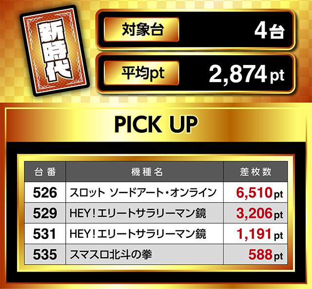 526番台の「スロット ソードアート・オンライン」が6,510pt。