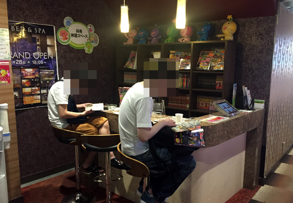 ゆったりとくつろげるといったイメージの漫画本のあるレストスペースも完備。