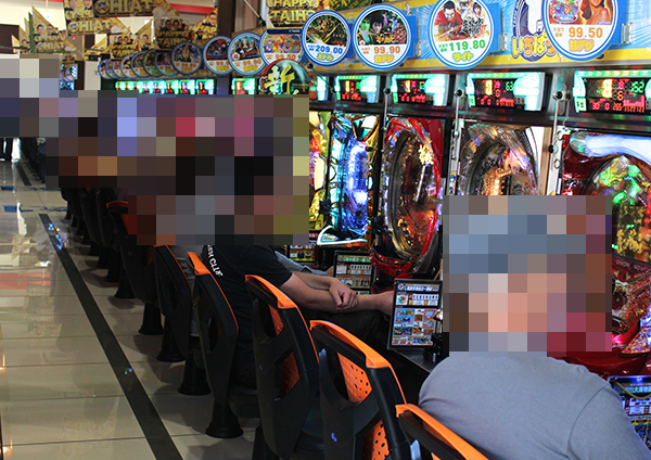遊技を楽しんでいるプレイヤーの明るい笑顔が印象的な「タイホー高丘」。