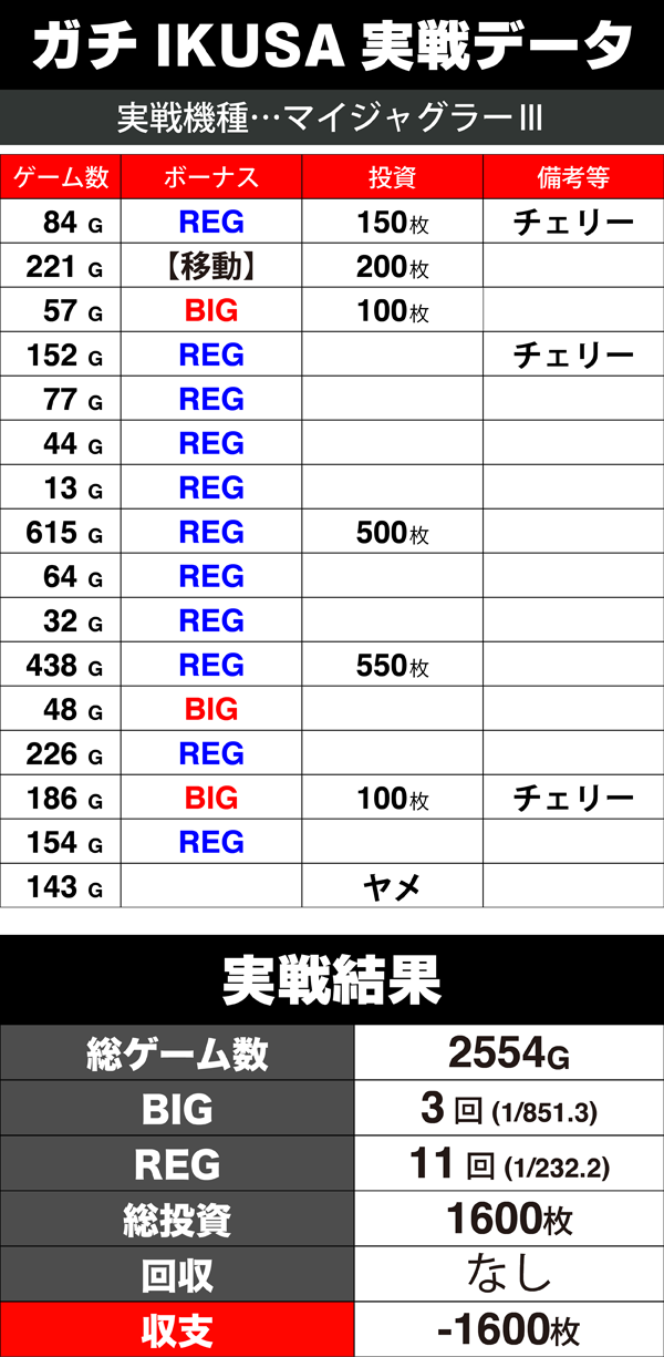 2台目でも順調にボーナス回数を増やしていったにも関わらず、その大半がREG。