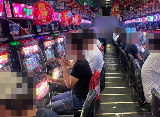パフォーマンスを披露するプレイヤーは、パチスロ全体でみても目立っていた。