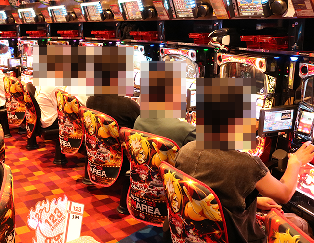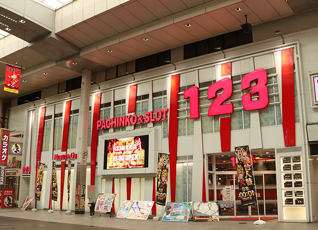 さまざまな機種に、遊技を満喫しているといった姿があった「123新市街店」。