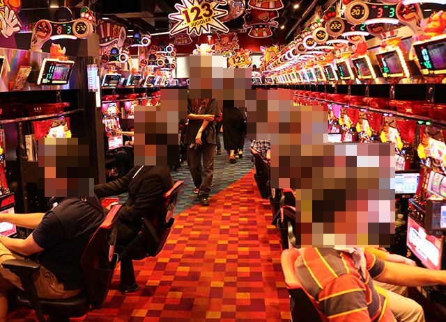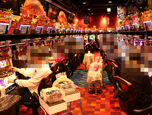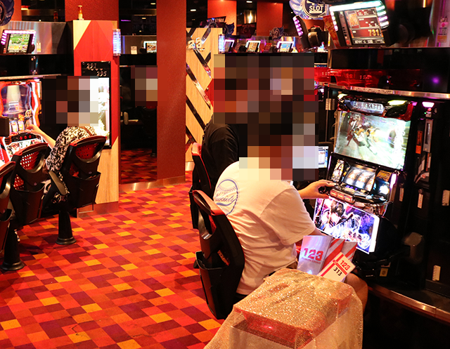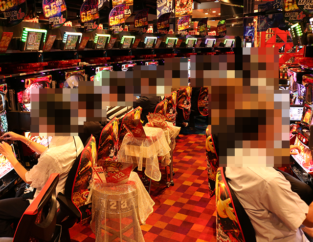 パチスロでは、多くのプレイヤーがうれしそうに遊技をおこなっており、随所に華やかな光景が広がっていた。