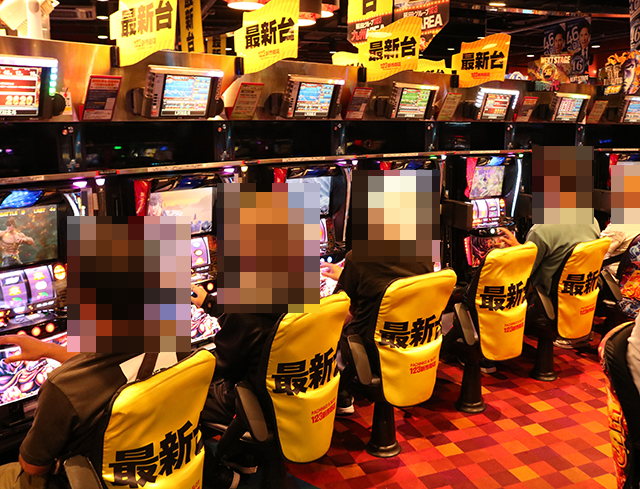 16時半過ぎのパチスロでは、「スマスロ北斗の拳」が人気を集めていた。