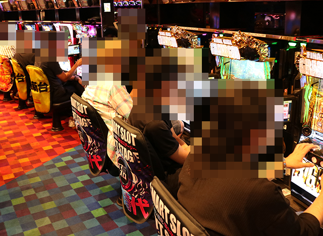 となりに設置された「SLOTバジリスク~甲賀忍法帖~絆2」も含め、華やかなムードが感じられる場所であった。