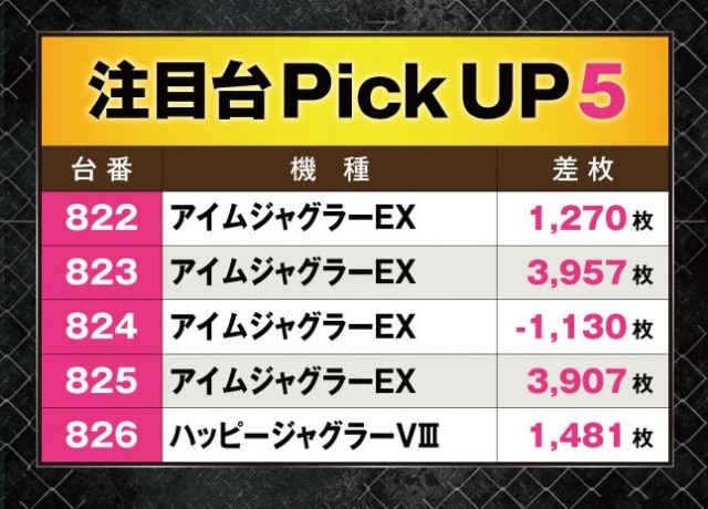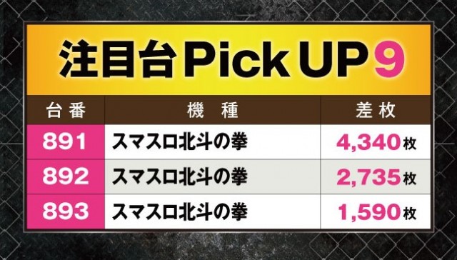 好調台はそれだけではない。店内には3~5台並びで7か所も好調台が誕生しており、ほとんどの並びが平均2,000枚オーバーと最高の結果になっていたのだ!