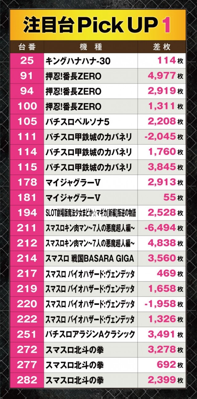 『パチスロ甲鉄城のカバネリ』や『スマスロ 戦国BASARA GIGA』、『パチスロアラジンAクラシック』なども活況。あちこちで3,000枚オーバーの好調台が見受けられ、プレイヤーたちの満足度はかなり高かったように思う。この結果を踏まえて、次回のブラックエンジェルス降臨の際も是非参考にしてほしい!