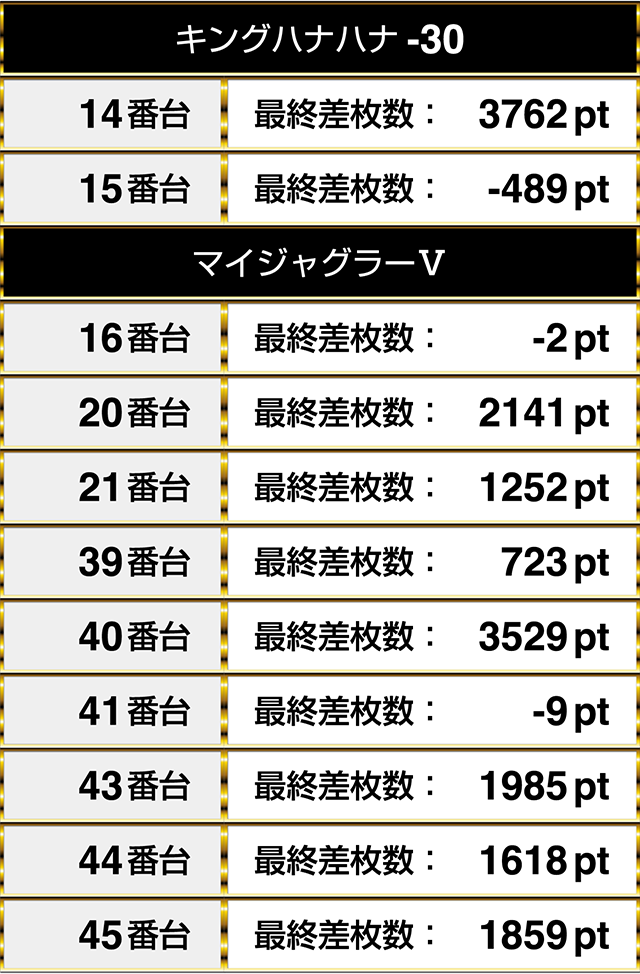 となりに設置された『キングハナハナ-30』の14番台も3000pt以上を記録した。