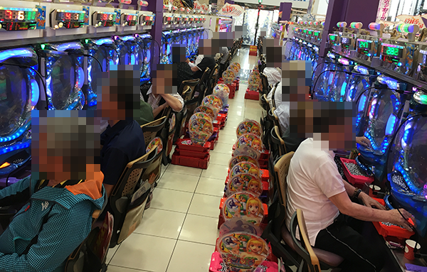 4円パチンコをみると、「CR牙狼 魔戒ノ花」と海物語シリーズが大盛況。どちらのシマにも、うれしそうなプレイヤーを確認でき、充実した時間を過ごせていることが伝わってきた。