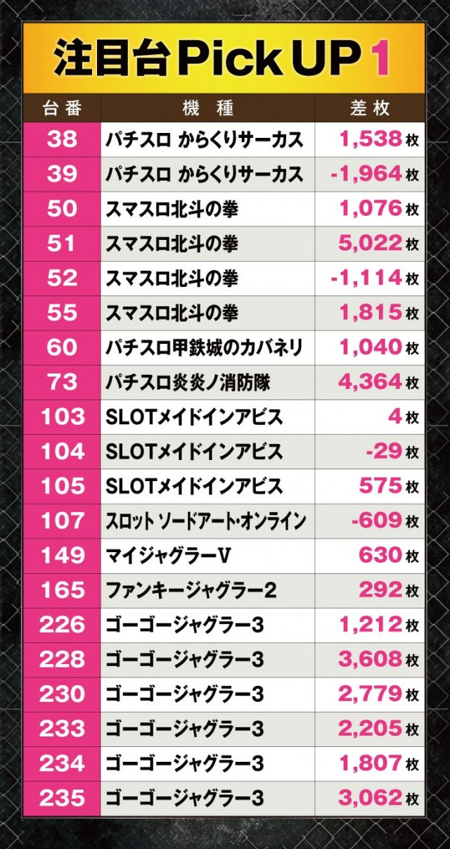 ほかにも『スマスロ北斗の拳』で5,022枚、『パチスロ炎炎ノ消防隊』で4,364枚と機種のポテンシャルをフルに発揮するシーンも目にしている。
