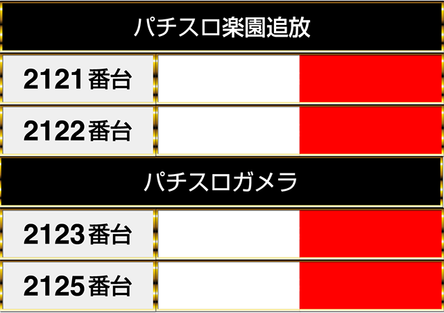 『パチスロ楽園追放』の2台と『パチスロガメラ』の2台が並んでプラスptを記録!