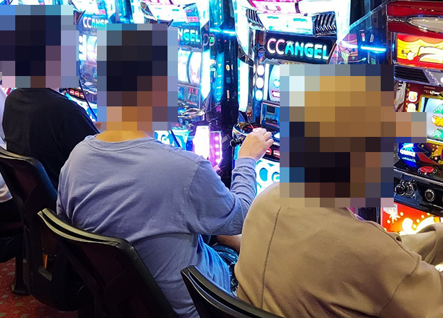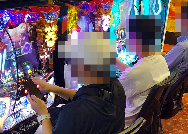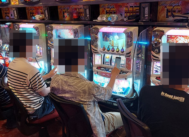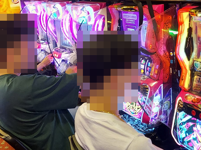 複数の場所から盛り上がりが感じられた「コンコルド東名店」。遊技を満喫しているといった姿は、パチスロファンの立場でみても魅力的に映った。