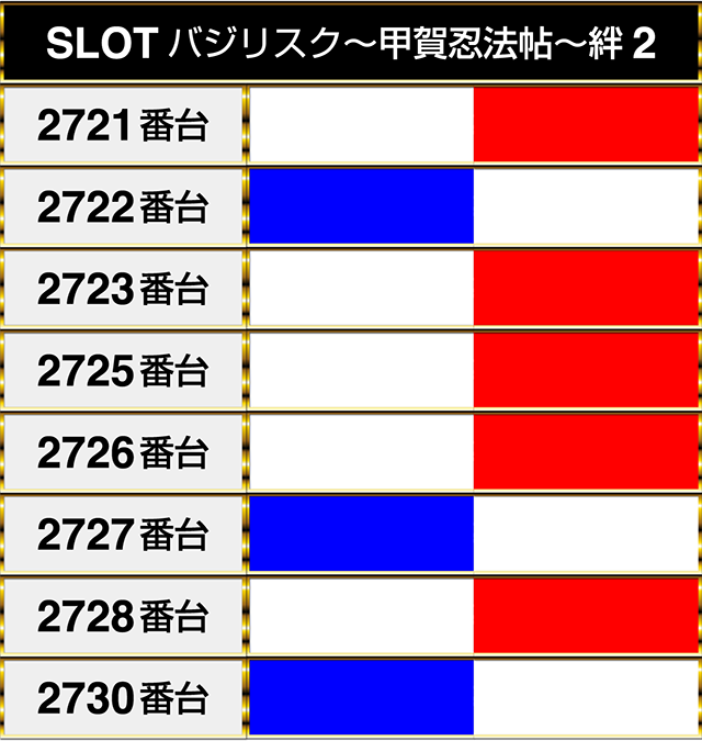 8台設置の『SLOTバジリスク~甲賀忍法帖~絆2』は5台がプラスpt!!