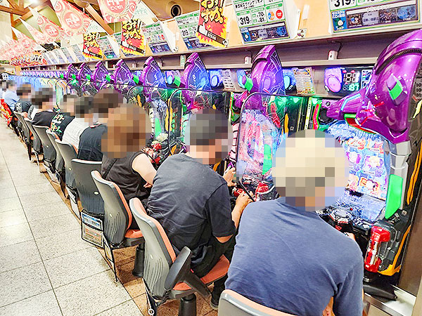 店内には老若男女を問わずプレイヤーが集合。パチンコ・パチスロの各シマから活気が感じられた。