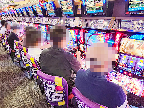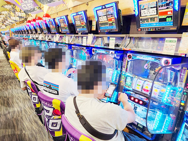 1000円/46枚パチスロに目を向けると、「スマスロ北斗の拳」や「スマスロ バイオハザード:ヴェンデッタ」、「スロット ソードアート・オンライン」などのスマスロで華麗なパフォーマンスを披露するプレイヤーが複数見られ、シマ内から活気が感じられた。