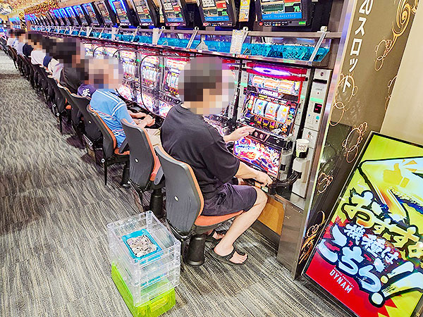 15時半ごろの4円パチンコでは「Pフィーバー機動戦士ガンダムSEED」や「新世紀エヴァンゲリオン〜未来への咆哮〜」の盛り上がりが大きく、魅力的なシーンをシマのあちこちで目にしている。