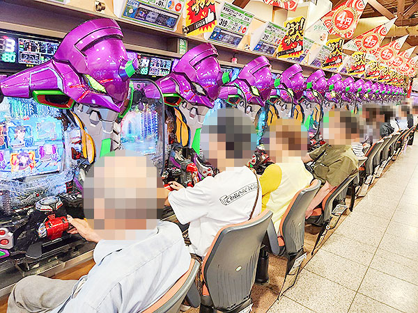 15時ごろの4円パチンコを見てみると「新世紀エヴァンゲリオン〜未来への咆哮〜」や「Pフィーバー炎炎ノ消防隊」が盛況の様子。機種のポテンシャルを上手く発揮するプレイヤーを多数確認している。