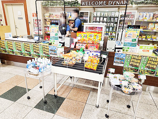 景品コーナーにはインスタント食品やお菓子など多彩なアイテムが揃っており、プレイヤーたちの興味をそそっていた。