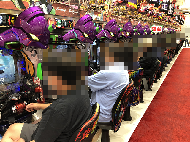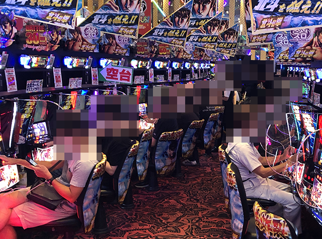 14時頃には、6割ほどの台が埋まっており、楽しそうに遊技をおこなうプレイヤーが並んでいた。