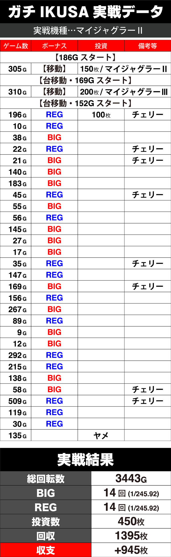 まずはBIG先行ではあるが、ボーナス合算確率のよい「マイジャグラーⅡ」にて戦を開始した。