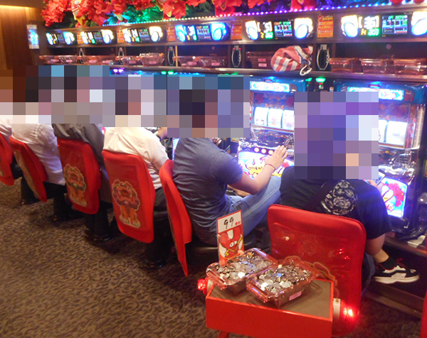 「やすだ東池袋9号店」では、実戦機種であるジャグラーシリーズ以外にも「バジリスク~甲賀忍法帖~絆」や「ミリオンゴッド-神々の凱旋-」でも、魅力的な光景がみられた。