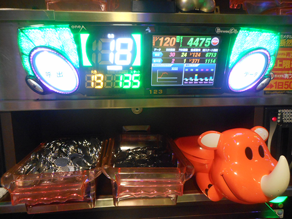 AT・ART機もよさそうだが、手堅くボーナスタイプを…と考え、地下のジャグラーコーナーへ向かうと、こちらも大にぎわい。