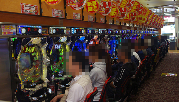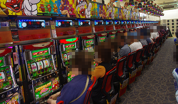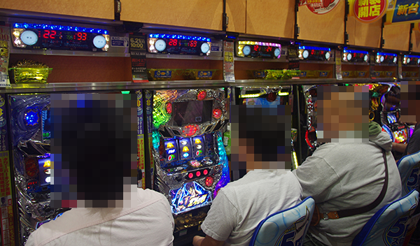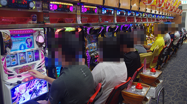 「パチスロ北斗の拳 強敵」や「南国物語」など、さまざまな機種がにぎわいをみせていた。