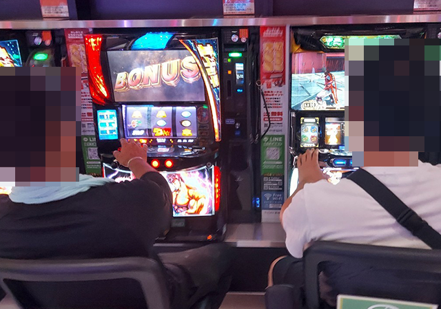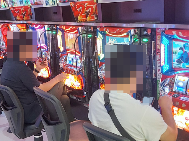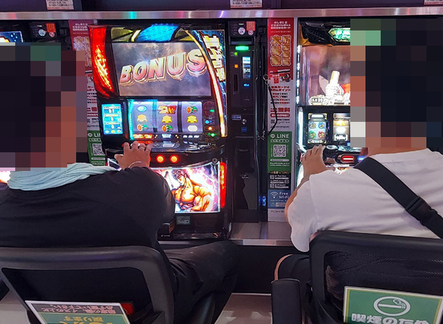 パチスロの状況をうかがうと、『スマスロ北斗の拳』や『スマスロ 戦国BASARA GIGA』に楽しげな光景が広がっていた。