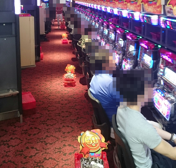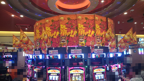 各シマで活気づいた場面を発見。周囲から注目を集める要素が数多くあった。「マルハン新発田店」の一面はパチスロコーナーで決まりだろう。