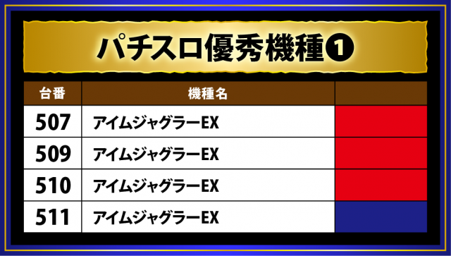 ここからは10スロに焦点を当て、この日の優秀台についてお伝えしていこう。