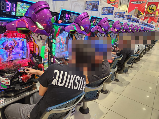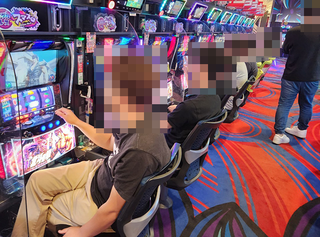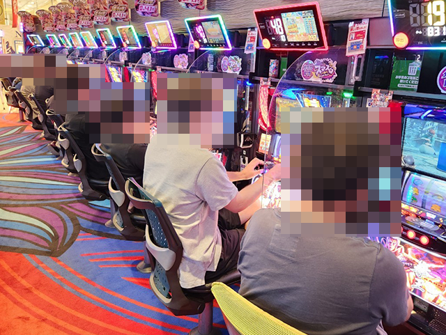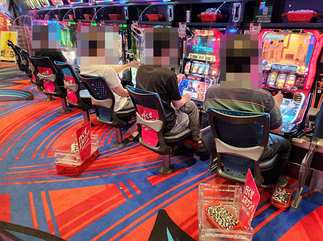 楽しそうに遊技をおこなうプレイヤーが並んでおり、シマ内はにぎやかな状況。