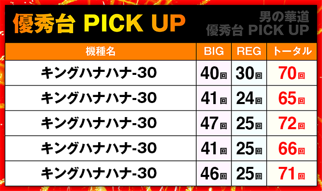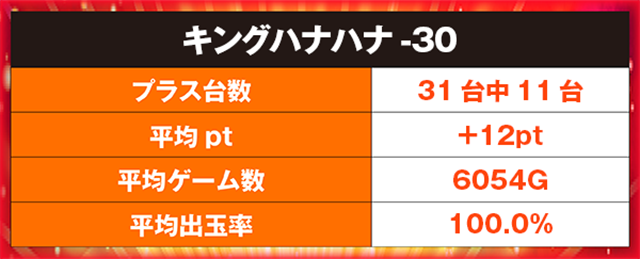 31台が設置されている「キングハナハナ-30」に優秀台が多かった。